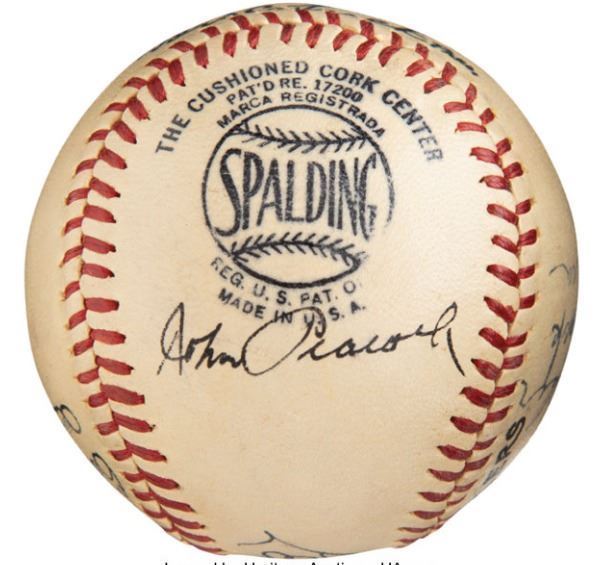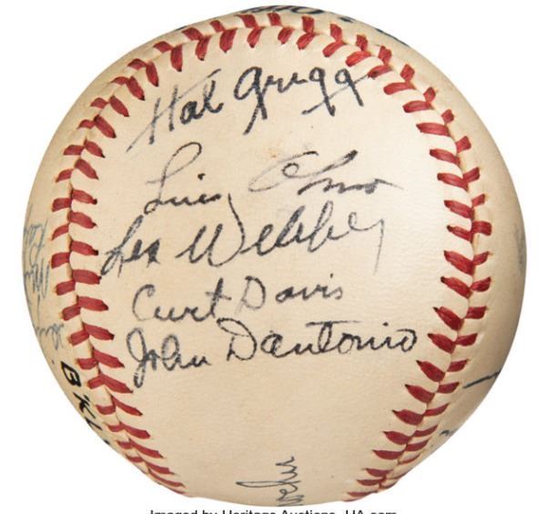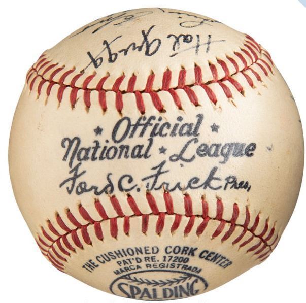 A dozen signatures average a stellar 9/10 on the provided ONL (Frick) sphere. Notables include Durocher, Galan, Branca, Walker, Basinski, Olmo, and more. Auction LOA from SGC Authentic.