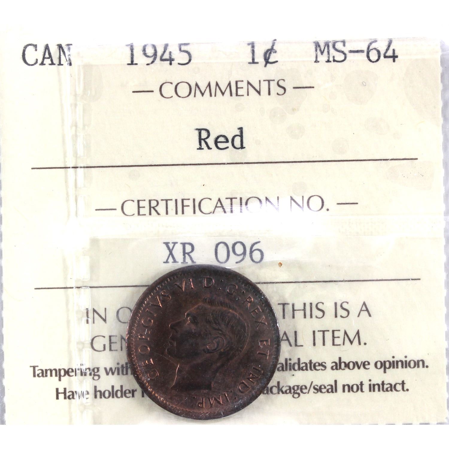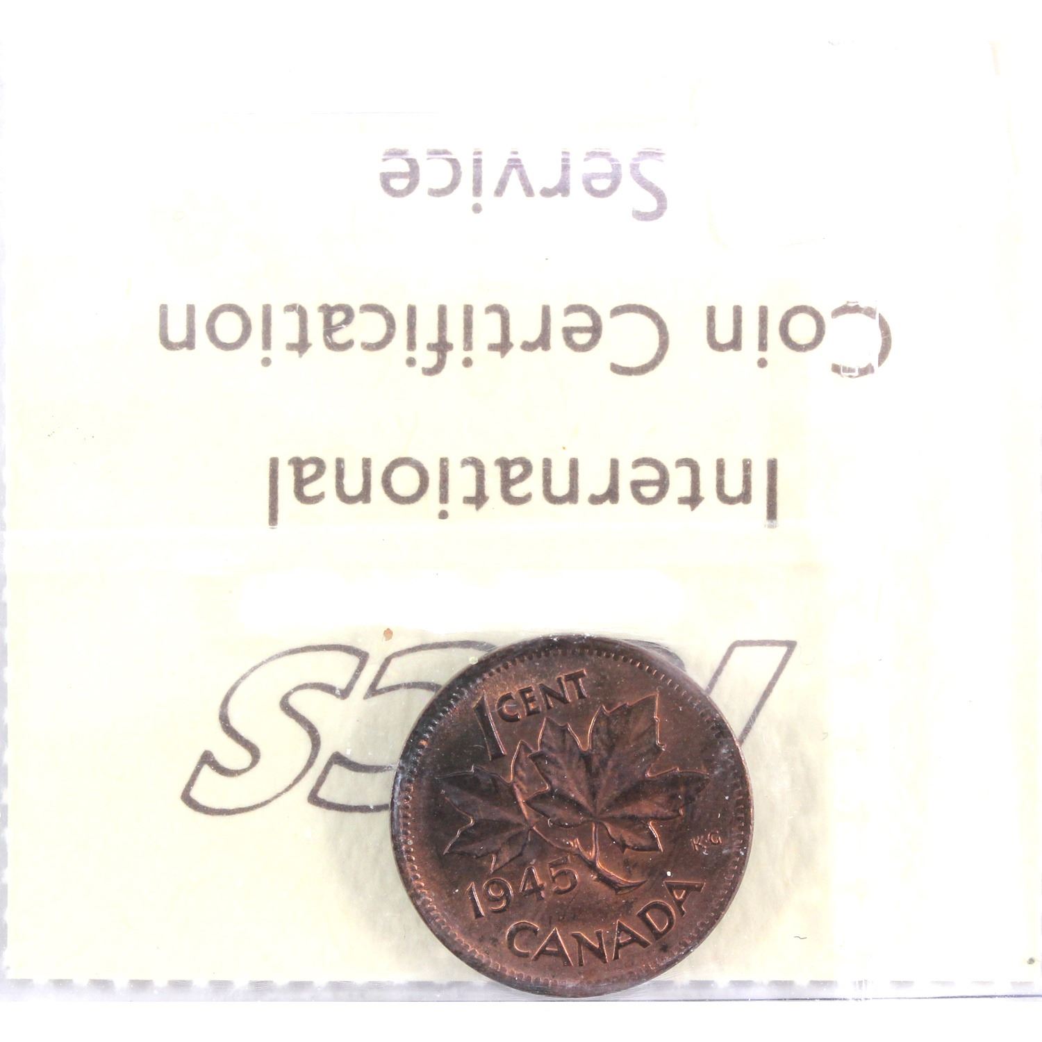 1945 Canada 1-cent ICCS Certified MS-64 Red.