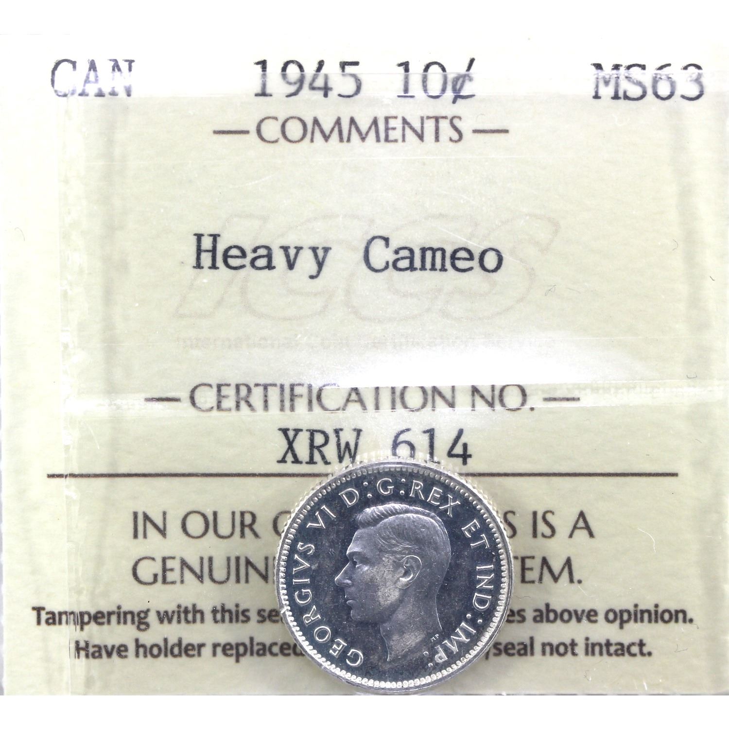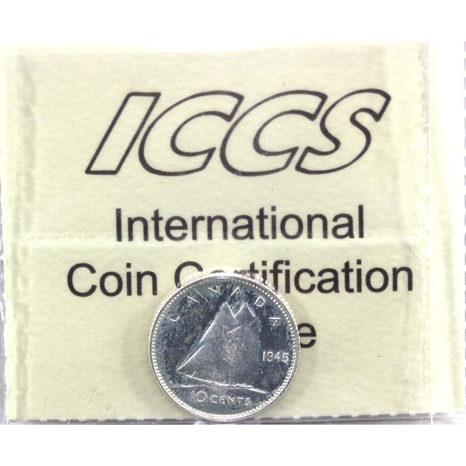 1945 Canada 10-cent ICCS Certified MS-63 Heavy Cameo.
