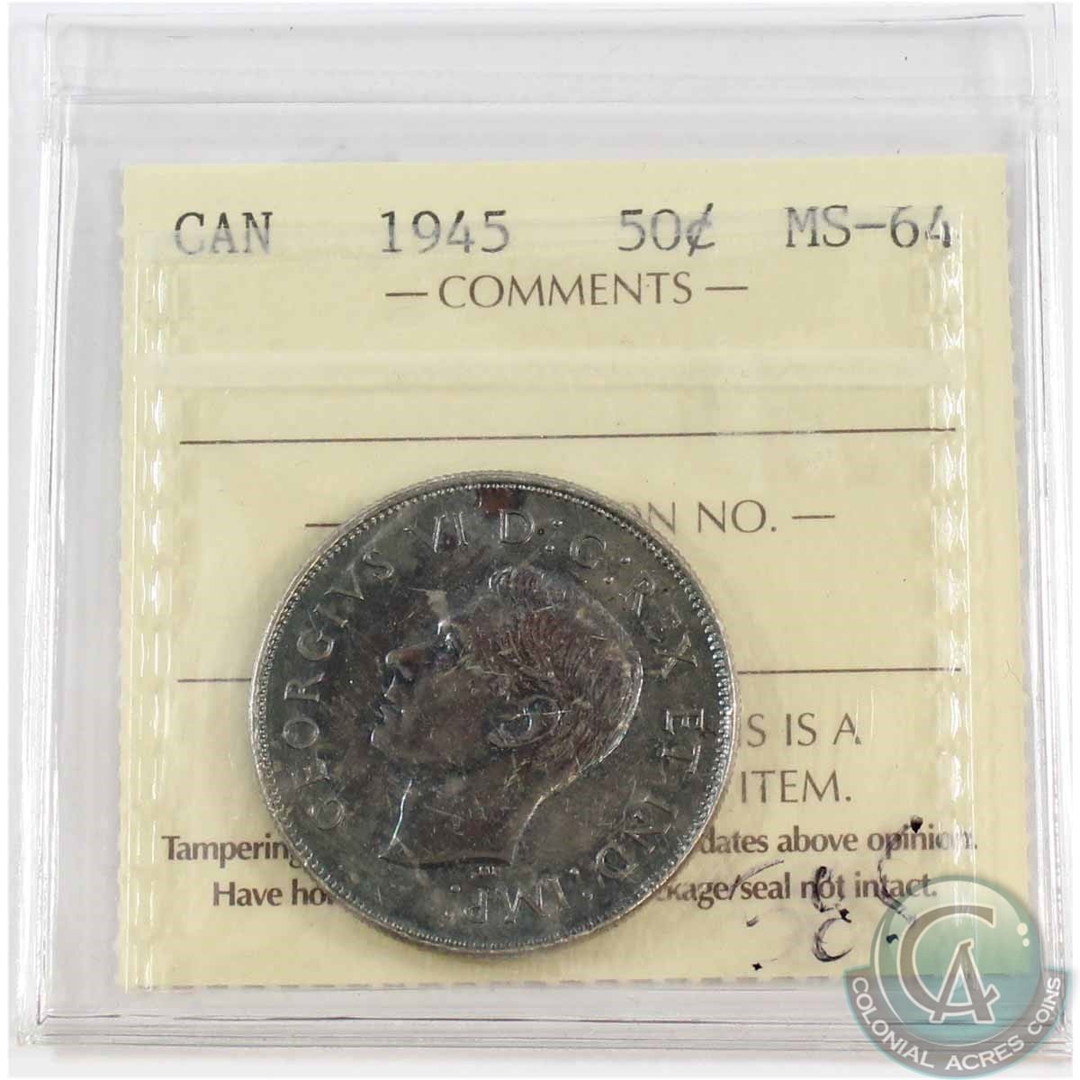1945 Canada 50-cent ICCS Certified MS-64