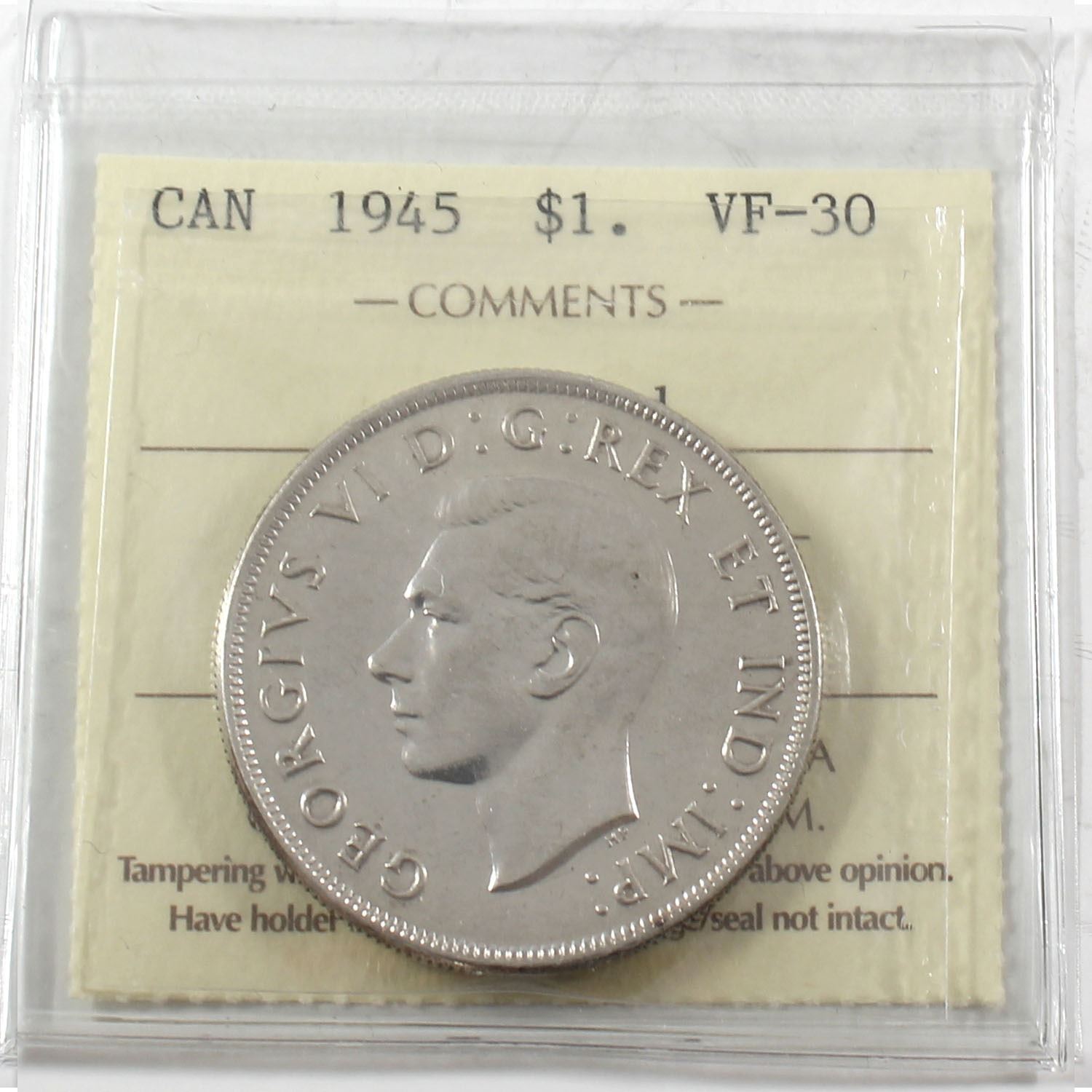 1945 Canada Silver $1 ICCS Certified VF-30 (Cleaned)