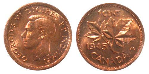 0034 - 1945 Canada Small Cent-ICCS MS64Red