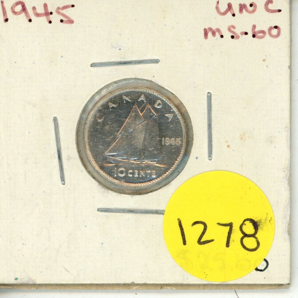 1945 Canadian 10 Cents Coin.