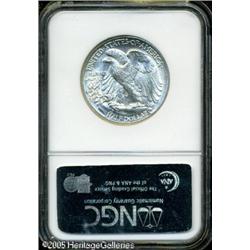 <B>1945-D 50C MS66 NGC.</B></I> Highly lustrous surfaces are virtually untoned and display boldly struck design elements. A few minute marks are seen on the obverse, the most notable being a minute linear abrasion on Liberty's left breast. Lot:8167