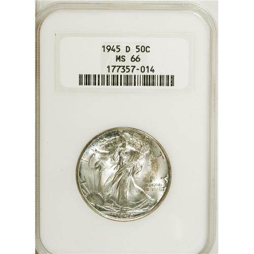 1945-D 50C MS66 NGC. NGC Census: (3100/248). PCGS