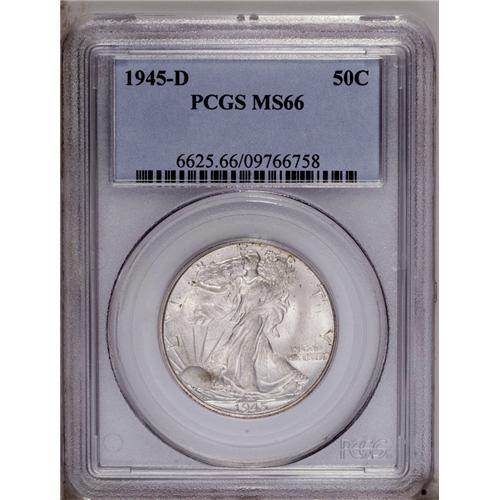 1945-D 50C MS66 PCGS. A shimmering, nearly mark-free e