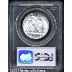 <B>1945-D<50C> MS66 PCGS.</B></I> Warm apricot color graces the left obverse border of this sharply struck and lustrous Walking Liberty Half. The reverse is essentially pristine, while the obverse is attractively preserved. <BR><BR><B>Important notice:</B> Heritage usually auctions material at the rate of 200-250 lots per hour. On some occasions eBay Live bid software or the Internet may not be able to keep up with the pace of the auction. We recommend placing a realistic absentee bid now as insurance to avoid disappointment. Occasionally the auctioneer may eliminate or reject an eBay Live bid, and the auctioneer may also reopen a lot after the close of the eBay live bidding (usually because we missed an audience bid), and may reject your bid even if it shows you as the winning bidder. By bidding via eBay Live, you agree that Heritage may award the lot to another bidder at its sole discretion under the circumstances described above or any other reasonable circumstances. Since eBay bids are not shown to us until we open the lot on the floor, we treat those bids just like floor bids. In most cases the floor responds before the eBay bid is presented to us, due to Internet lag time, so for consistency we have made it a policy that floor bids are always considered first over tie eBay live bids. Also please note that all Heritage lots purchased through eBay Live carry a 20% Buyer's Premium. Please make sure you read the Terms and Conditions before you bid. </span></font></tr></table></td></tr></table>