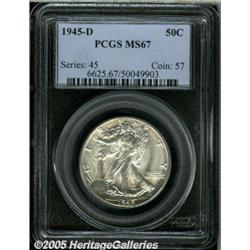 <B>1945-D 50C MS67 PCGS.</B></I> The design elements are nicely defined, and both sides display full brilliance. An exquisitely preserved D-mint Walker. Population: 91 in 67, 0 finer (2/05).