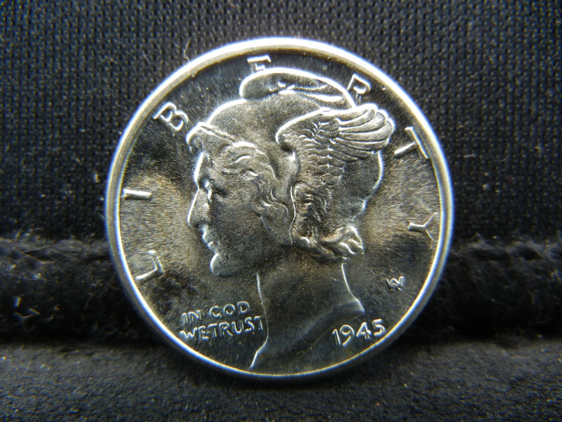 1945-D Brilliant Uncirculated Mercury Head Dime.