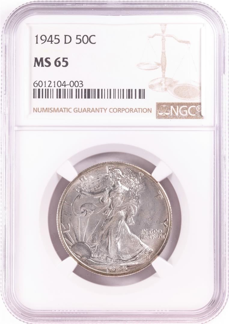 One 1945-D Franklin Half Dollar Coin NGC MS65. NGC Certified.