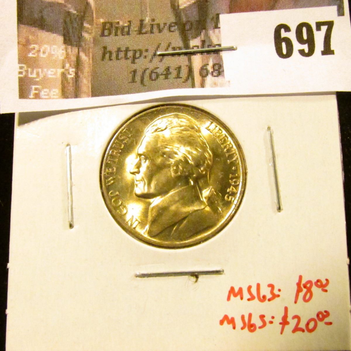 1945-D Jefferson Nickel, BU, MS63 value $8, MS65 value $20