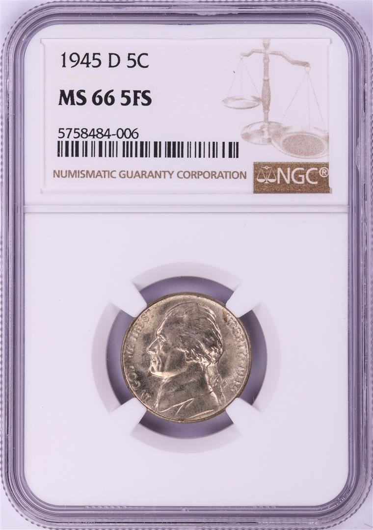 One 1945-D Jefferson Nickel Coin NGC MS66 5FS. NGC Certified.