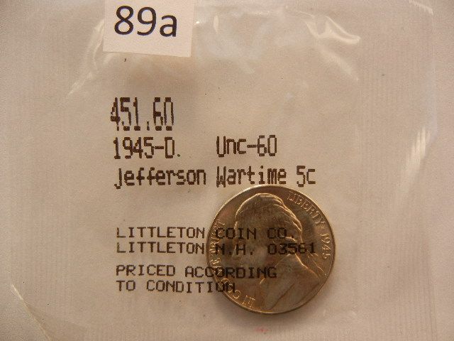 1945 D Jefferson War Time 40 % Silver Nickel UNC 60