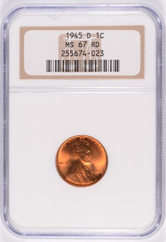 1945-D LINCOLN CENT, NGC MS-67! RED! RARE!!