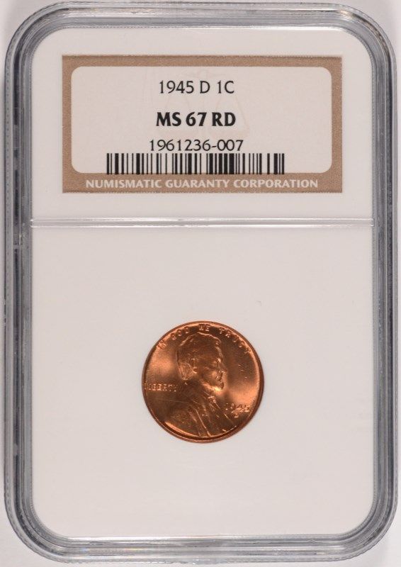 1945-D LINCOLN CENT, NGC MS-67 RED! RARE!!