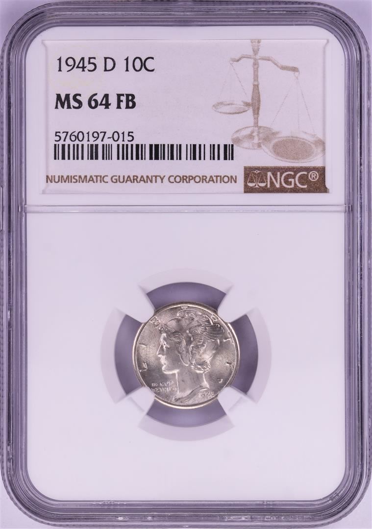 One 1945-D Mercury Dime Coin NGC MS64FB. NGC Certified.