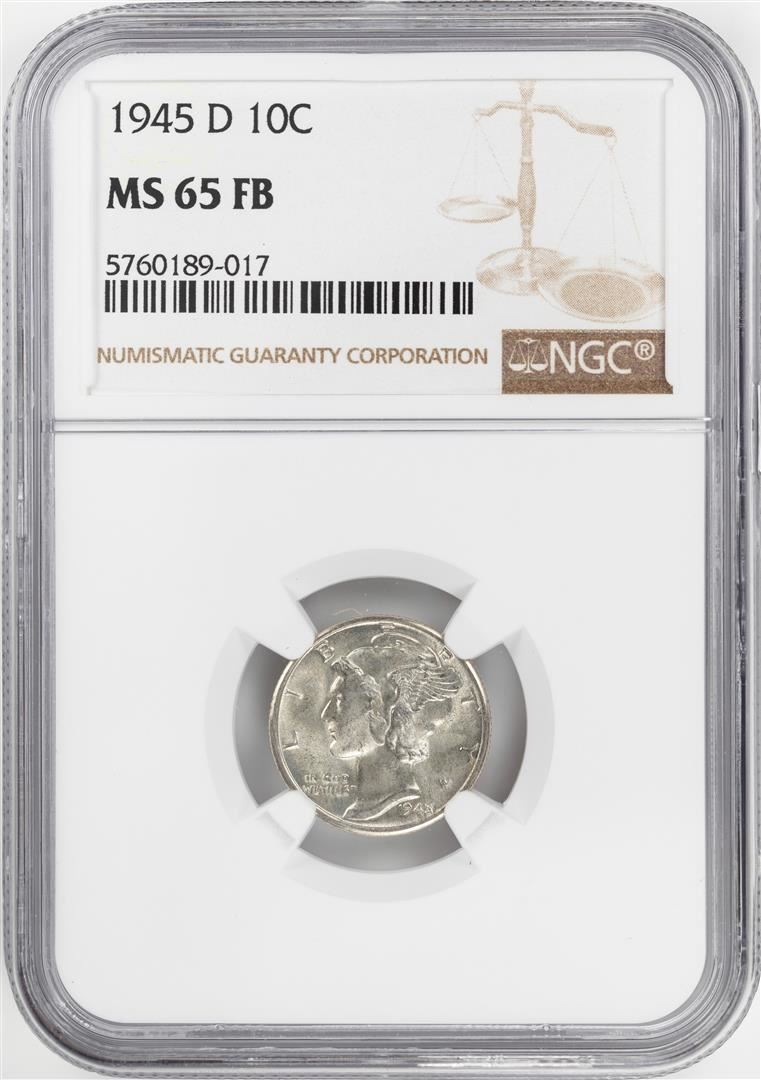 One 1945-D Mercury Dime Coin NGC MS65FB. NGC Certified.