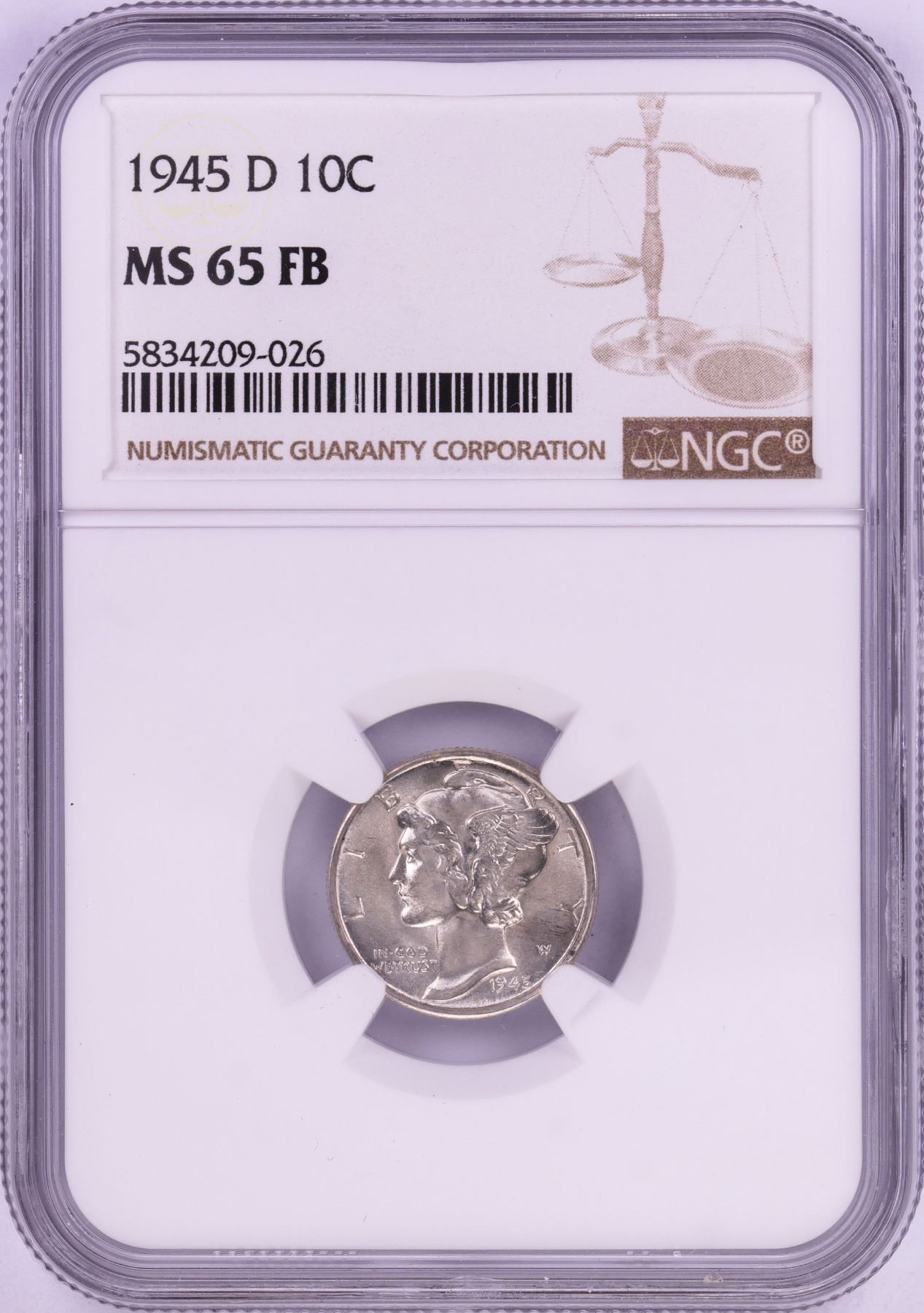 One 1945-D Mercury Dime Coin NGC MS65FB.