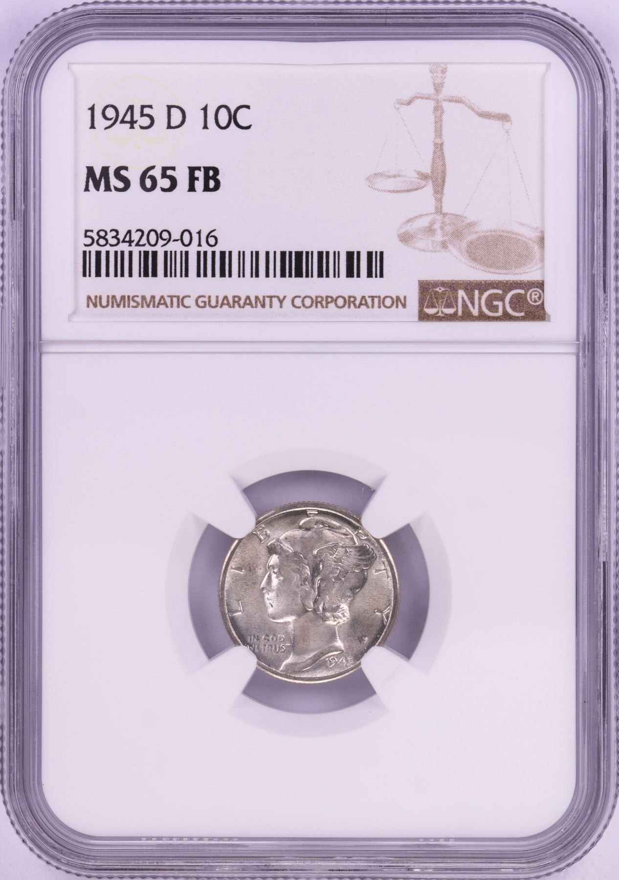 One 1945-D Mercury Dime Coin NGC MS65FB.