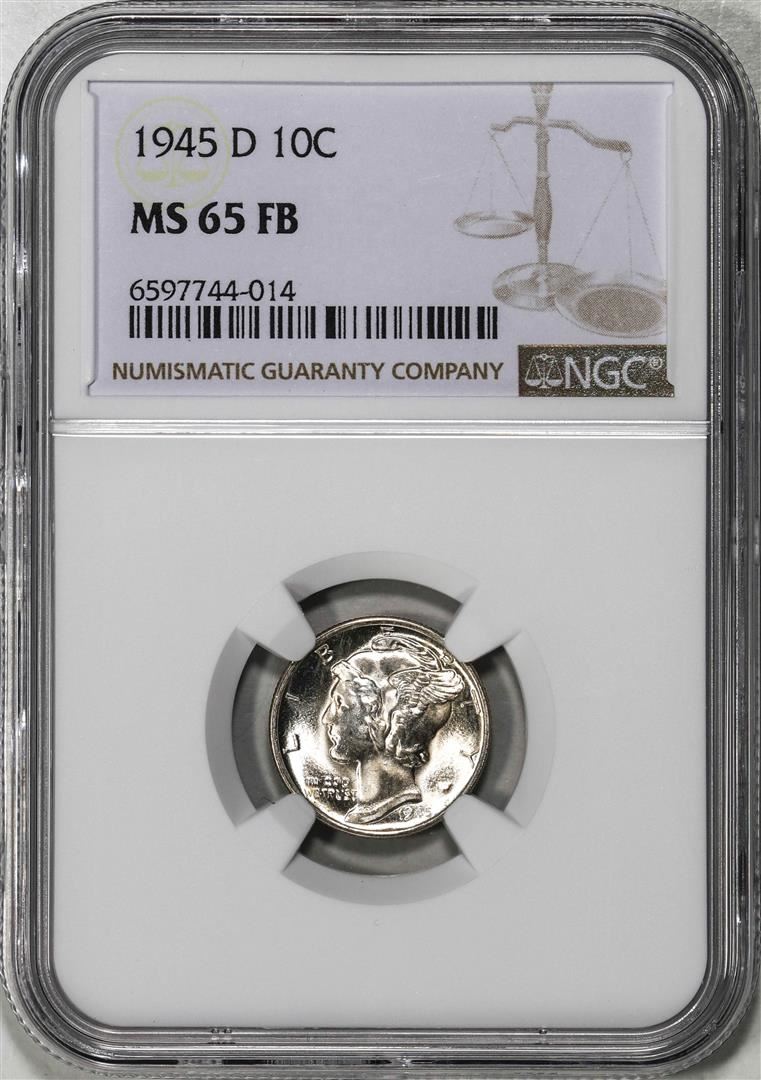 One 1945-D Mercury Dime Coin NGC MS65FB. NGC Certified.