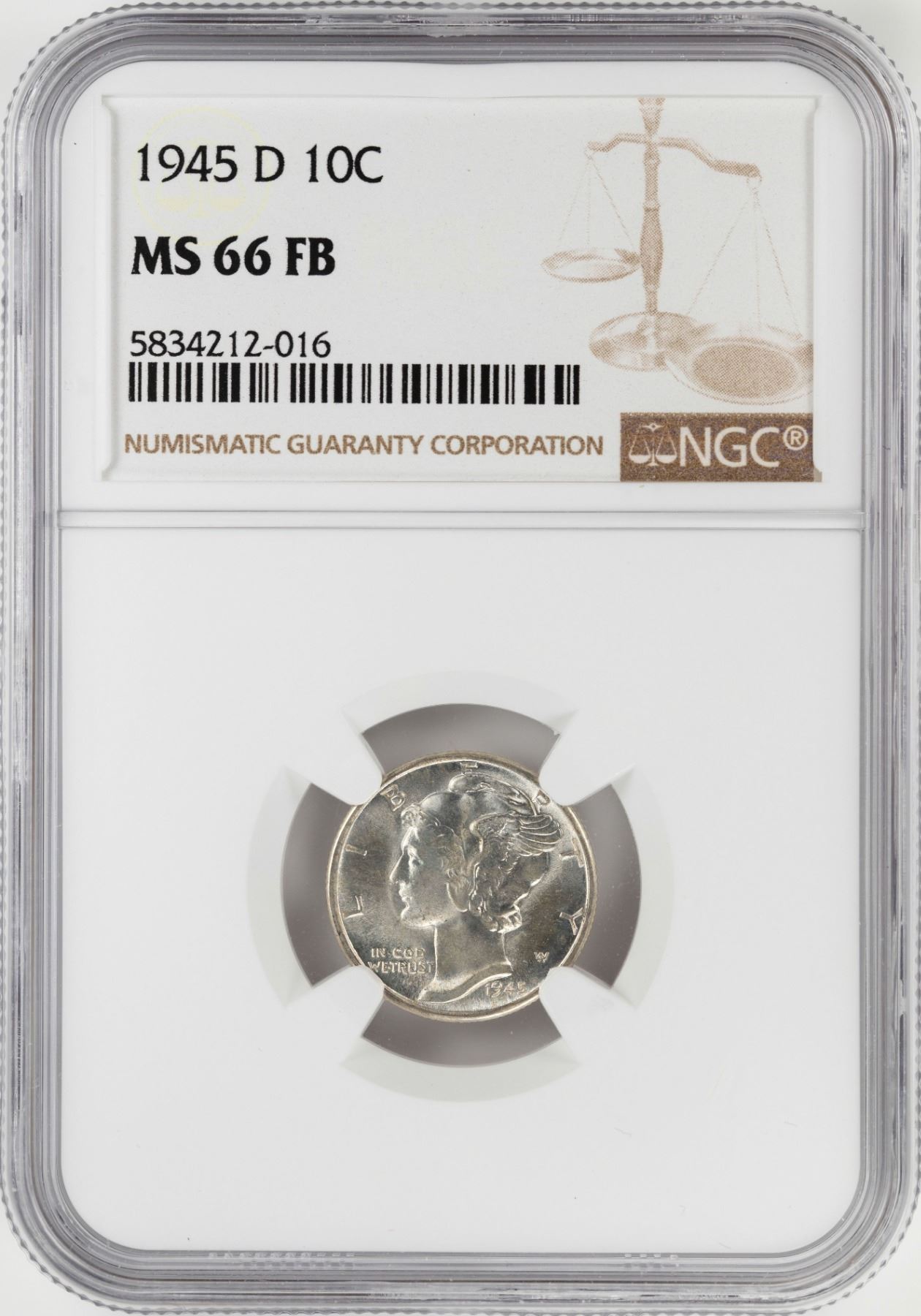 One 1945-D Mercury Dime Coin NGC MS66FB.