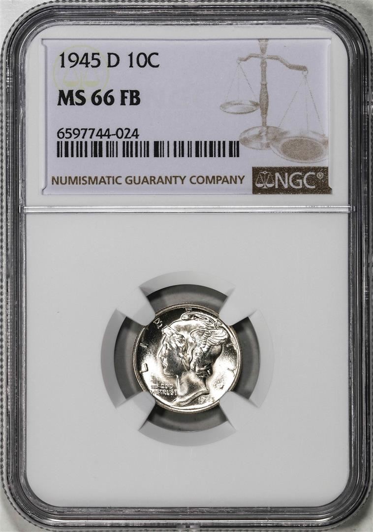 One 1945-D Mercury Dime Coin NGC MS66FB. NGC Certified.