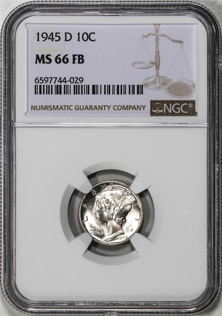 One 1945-D Mercury Dime Coin NGC MS66FB. NGC Certified.