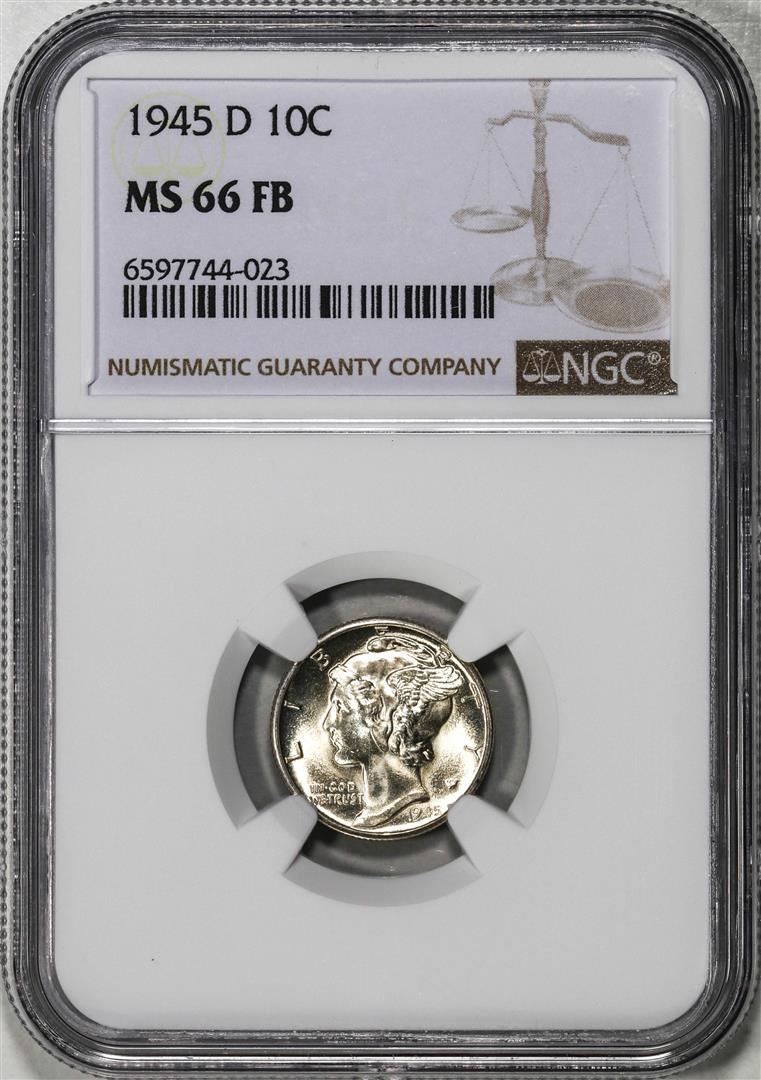 One 1945-D Mercury Dime Coin NGC MS66FB. NGC Certified.