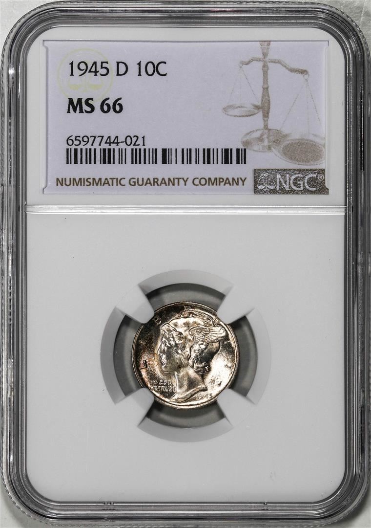 One 1945-D Mercury Dime Coin NGC MS66 . NGC Certified.