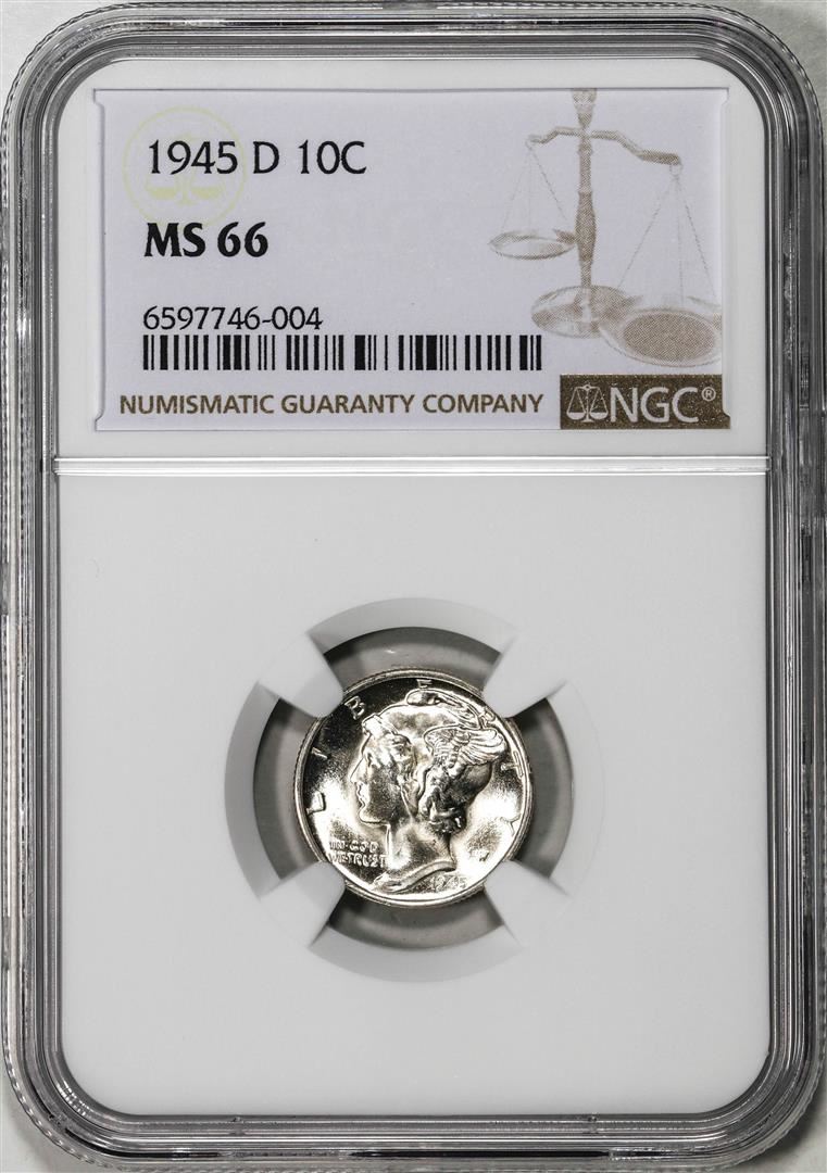 One 1945-D Mercury Dime Coin NGC MS66. NGC Certified.