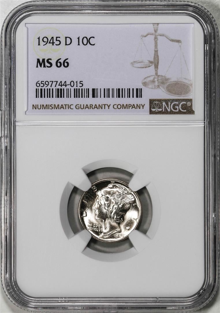 One 1945-D Mercury Dime Coin NGC MS66. NGC Certified.