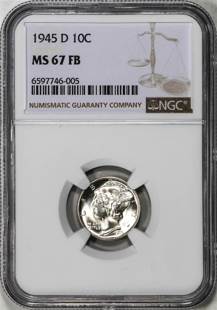 One 1945-D Mercury Dime Coin NGC MS67FB. NGC Certified.