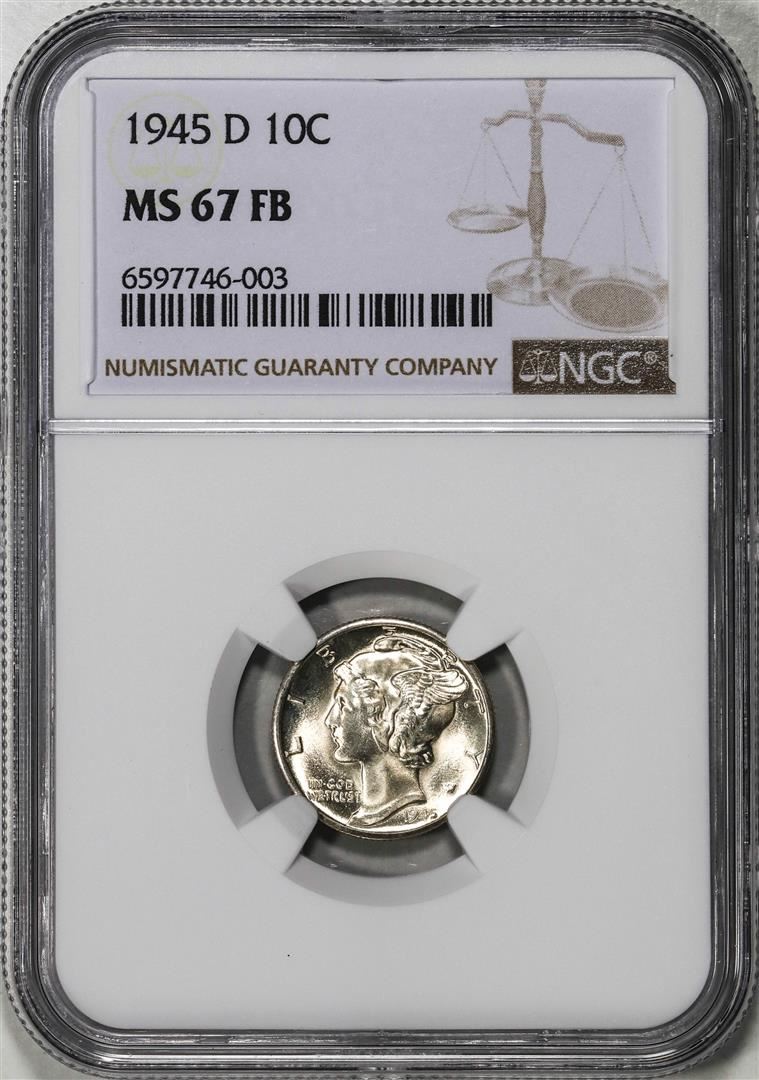 One 1945-D Mercury Dime Coin NGC MS67FB. NGC Certified.