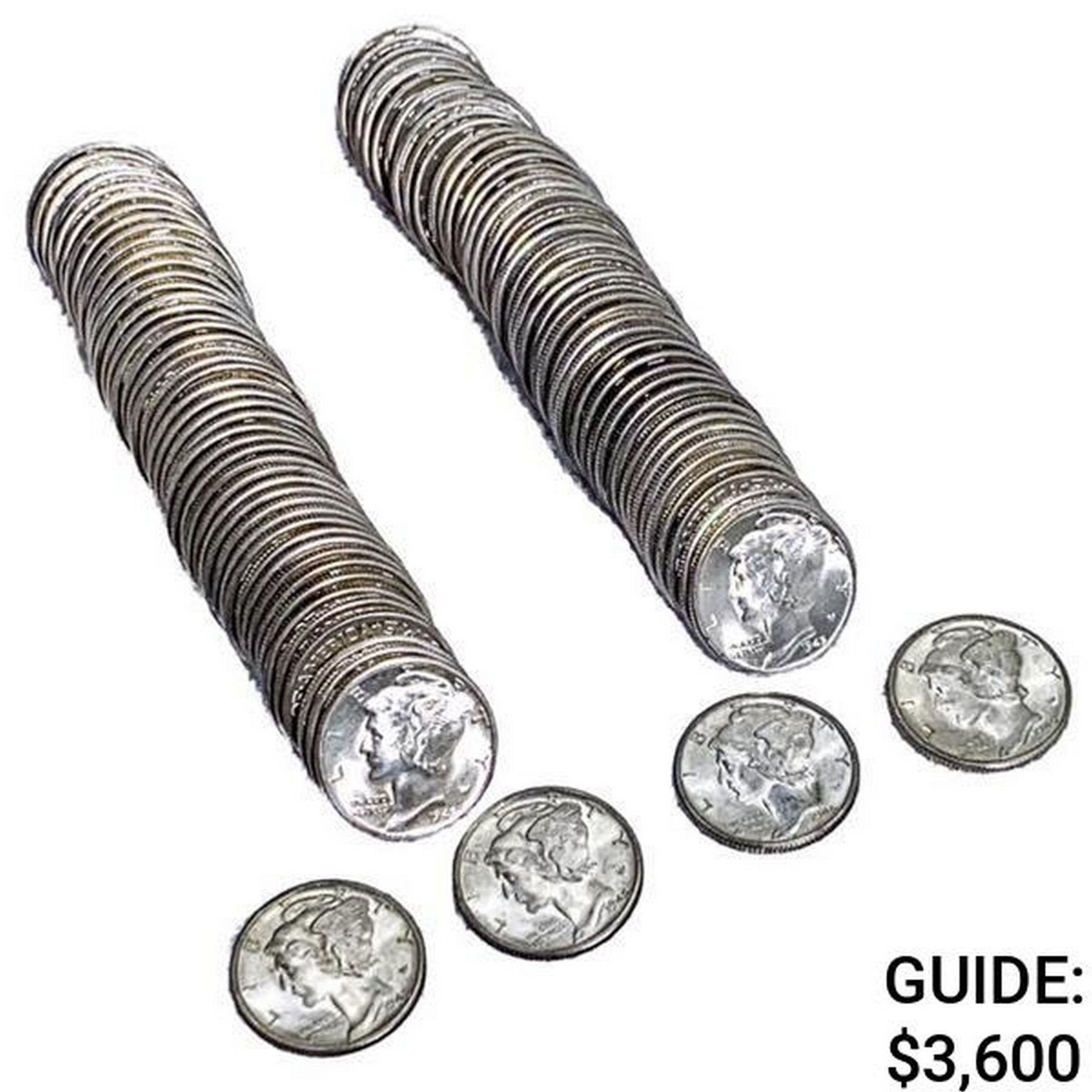 1945-D UNC Rolls of Mercury Dimes [100 Coins] GEMBU