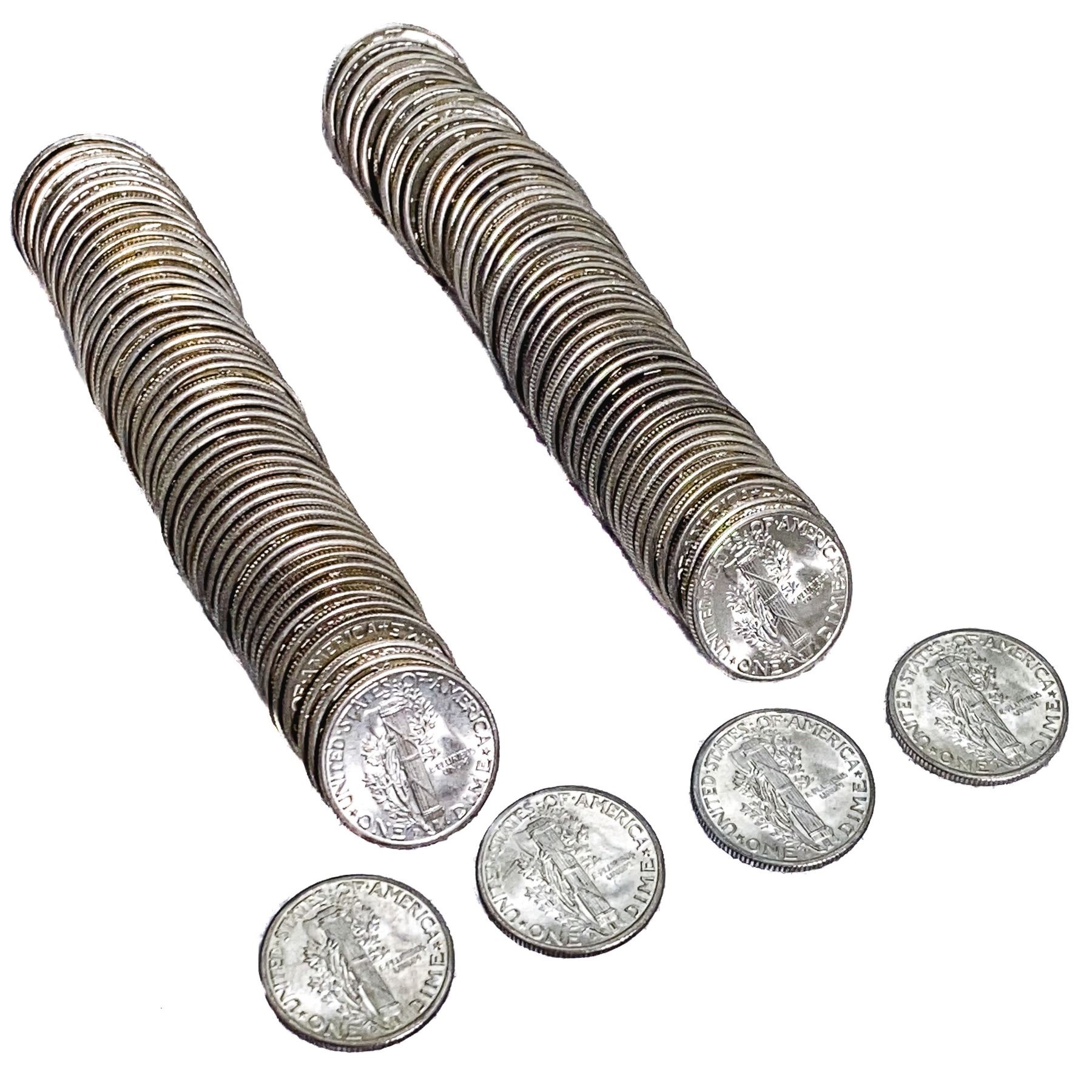 1945-D UNC Rolls of Mercury Dimes [100 Coins]