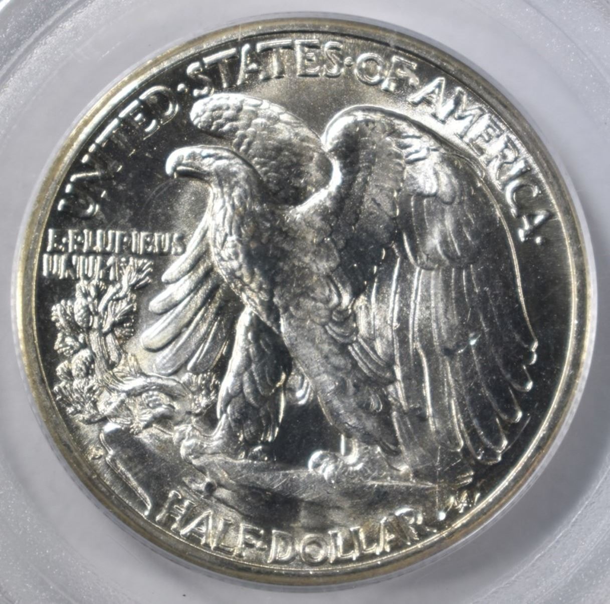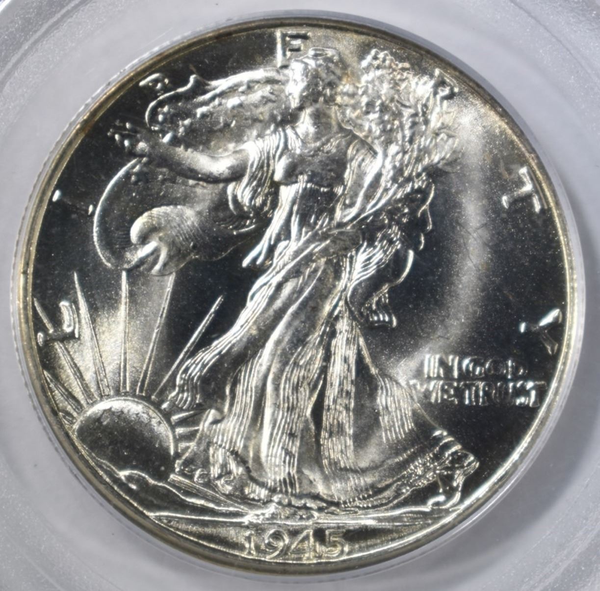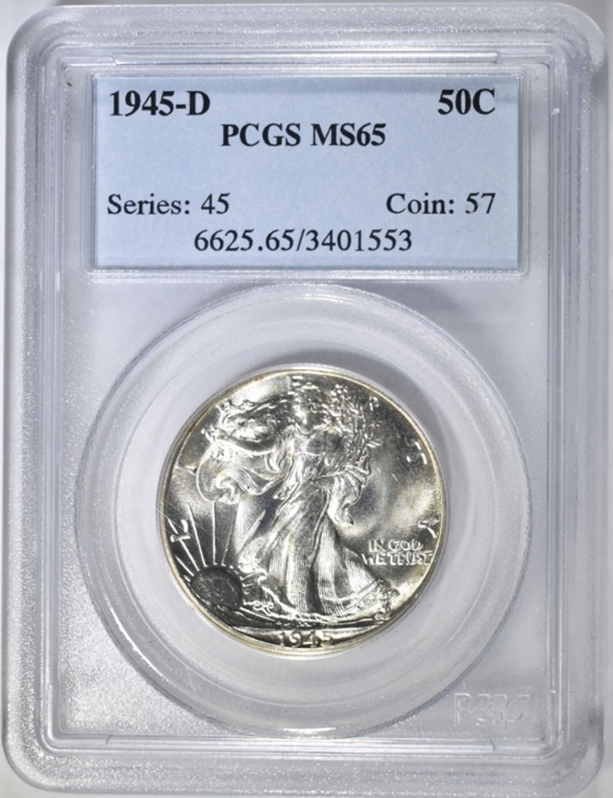 1945-D WALKING LIBERTY HALF DOLLAR, PCGS MS-65