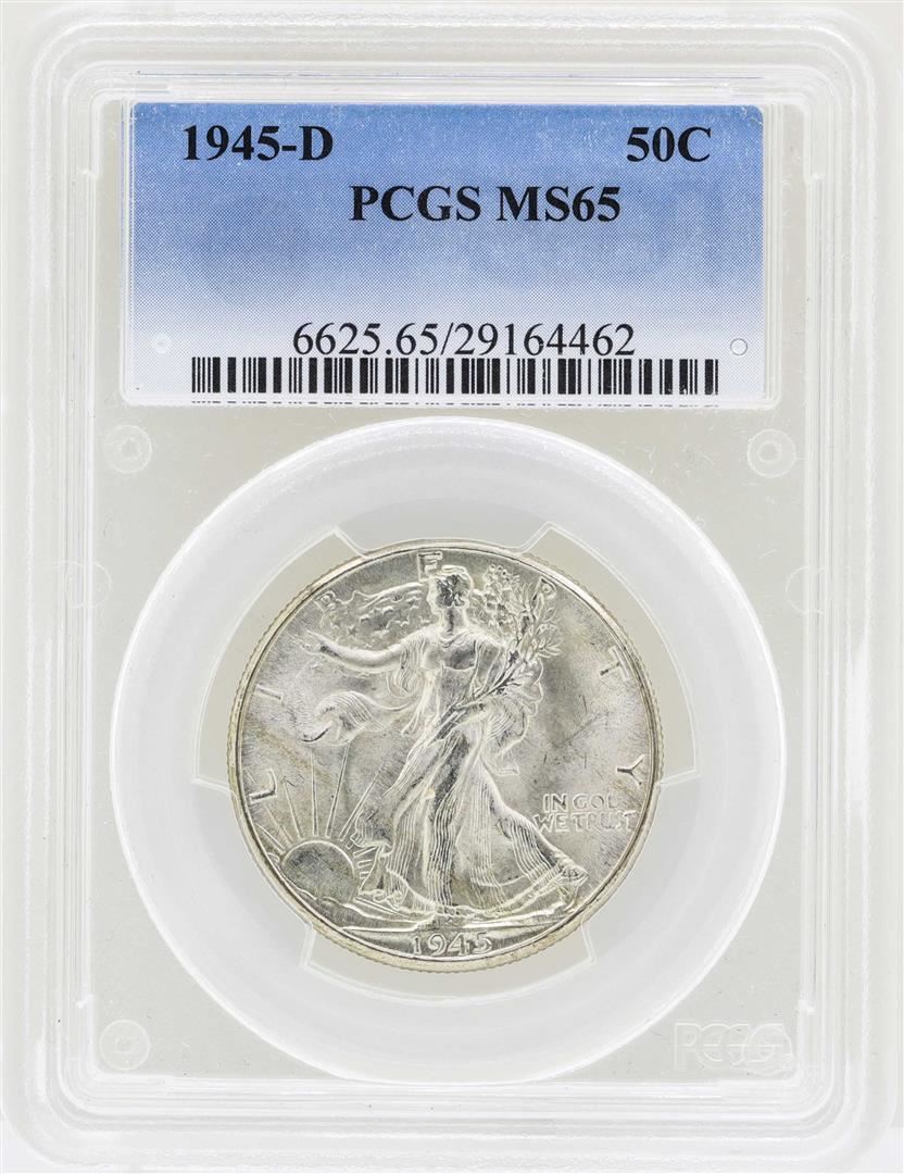 One 1945-D Walking Liberty Half Dollar Coin PCGS MS65. PCGS Graded.
