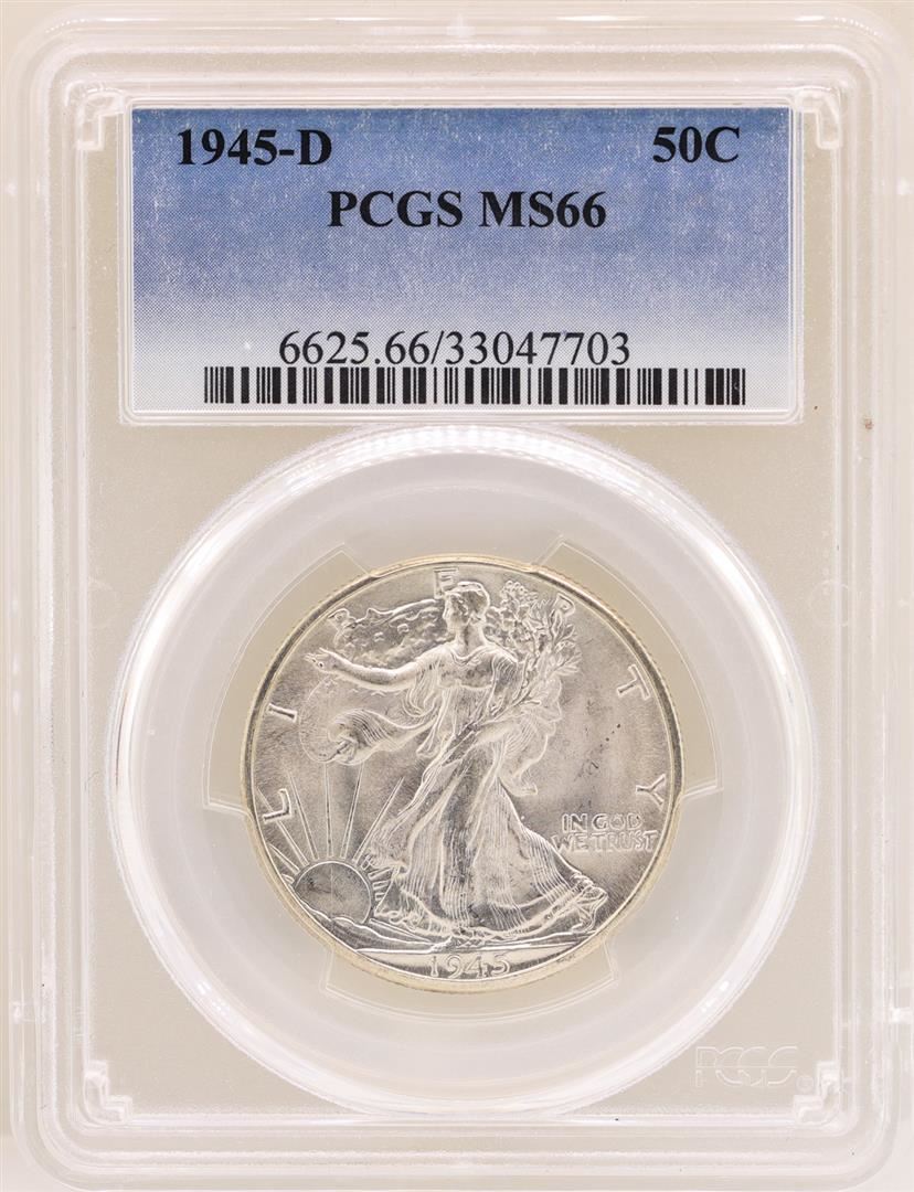 One 1945-D Walking Liberty Half Dollar Coin PCGS MS66. PCGS Certified.