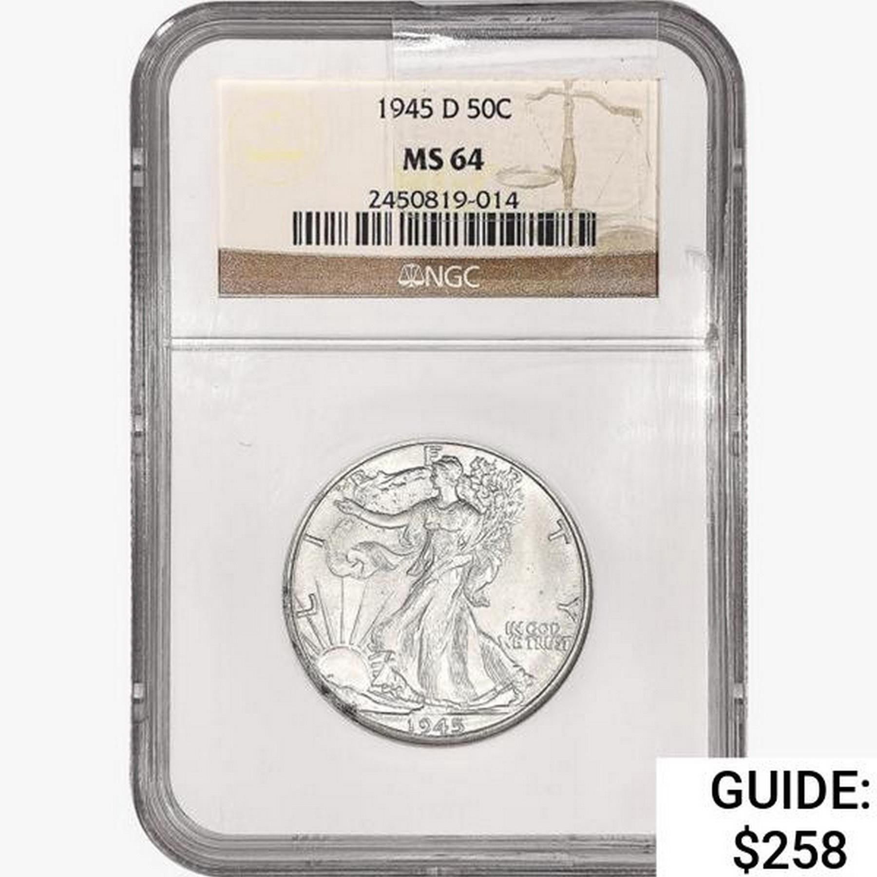 1945-D Walking Liberty Half Dollar NGC MS64