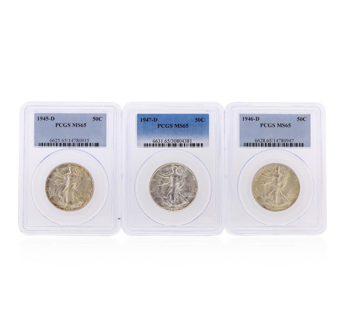 1945-D to 1947-D Walking Liberty Half Dollar Coins PCGS Graded MS65