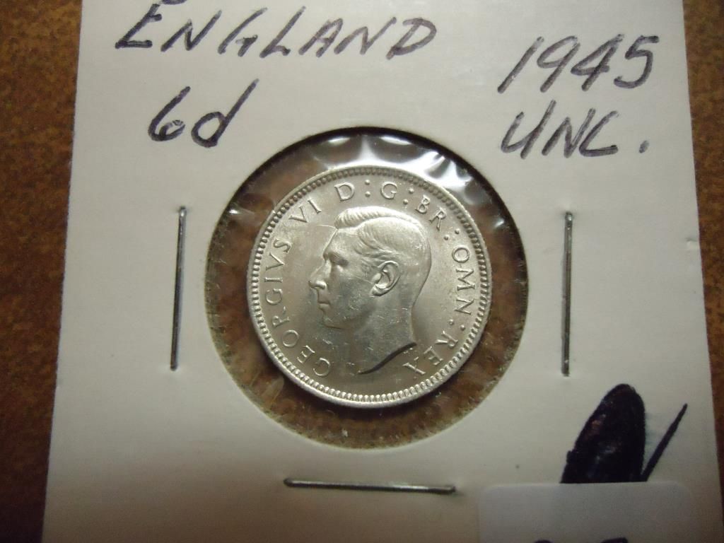 1945 GREAT BRITAIN SILVER 6 PENCE (UNC)