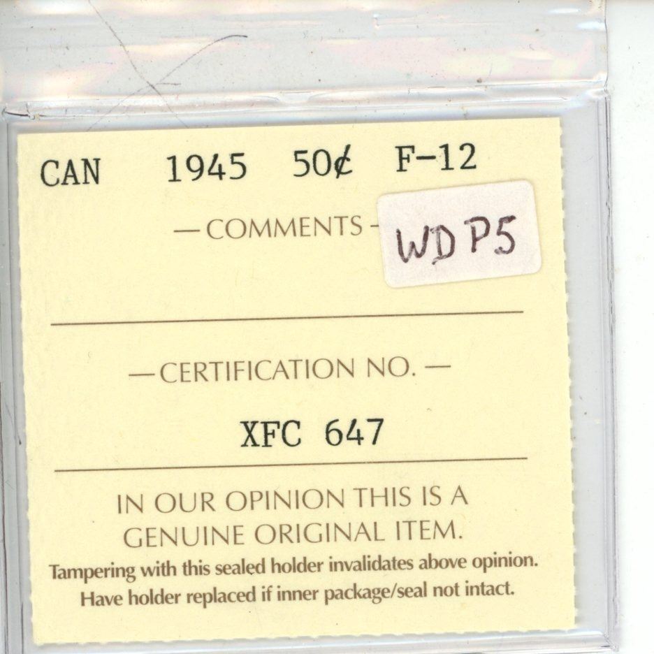 1945 ICCS Graded - Canadian Fifty Cent - F12