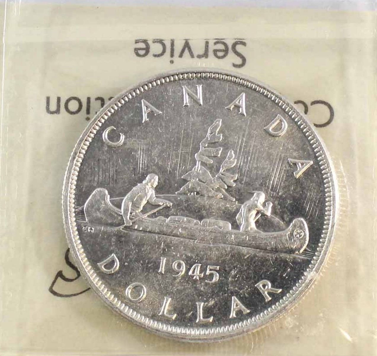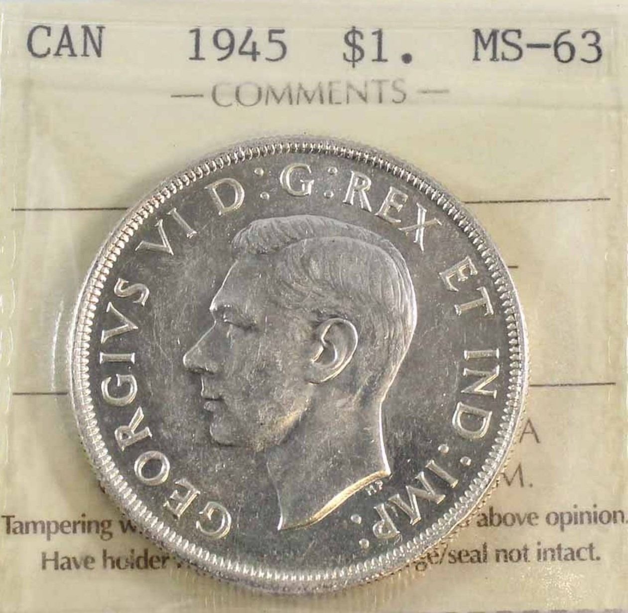 1945 King George VI Canadian Silver Dollar ICCS-MS-63
