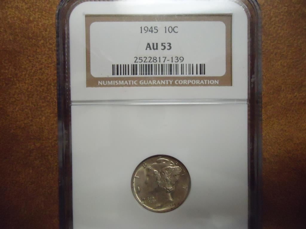 1945 MERCURY DIME NGC AU53