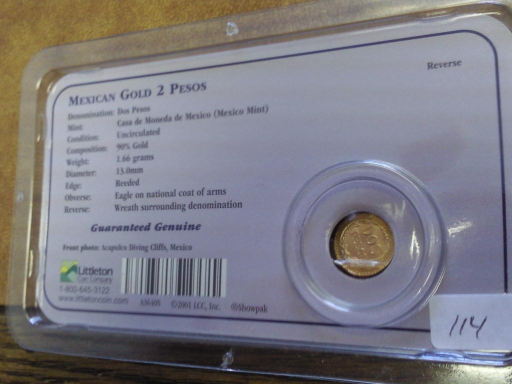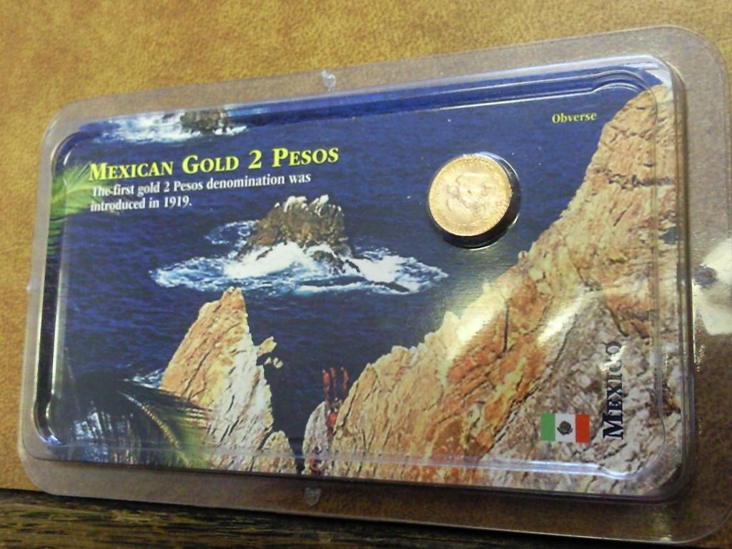 1945 MEXICO GOLD 2 PESOS (UNC) 1.66 GRAMS