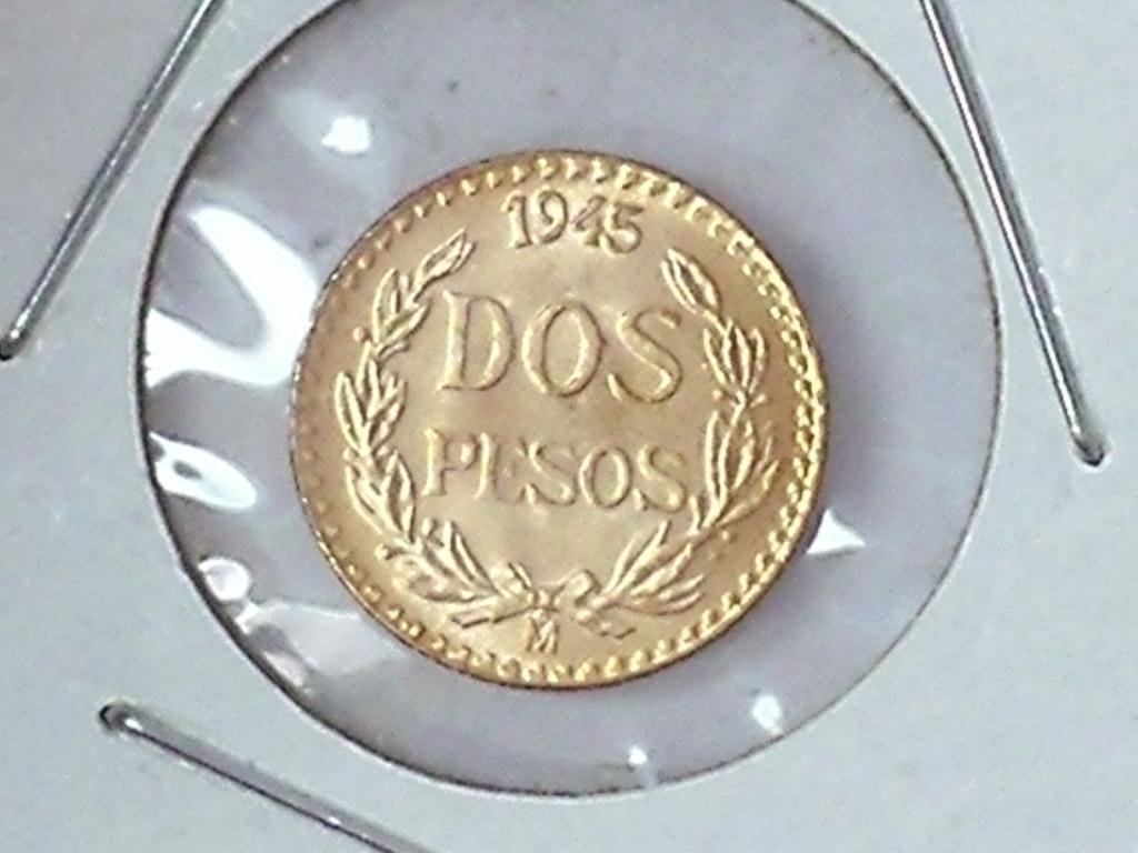 1945 MEXICO GOLD TWO PESOS .0482 OZ AGW