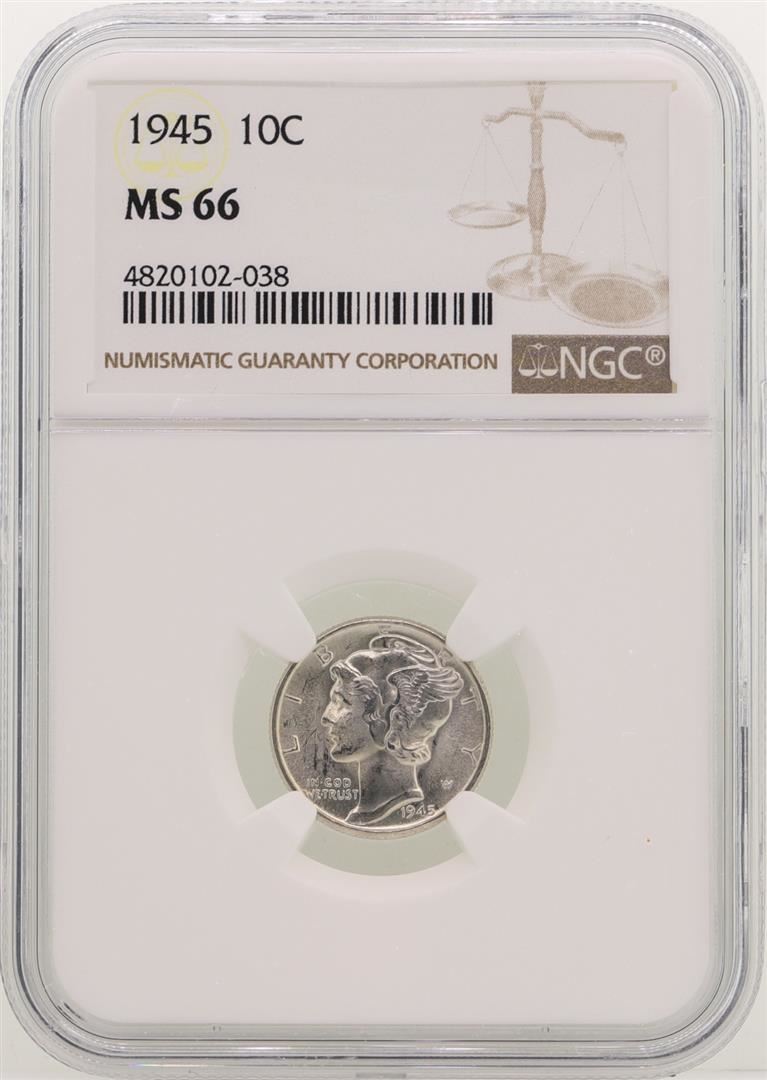 One 1945 Mercury Dime Coin NGC MS66. NGC Certified.