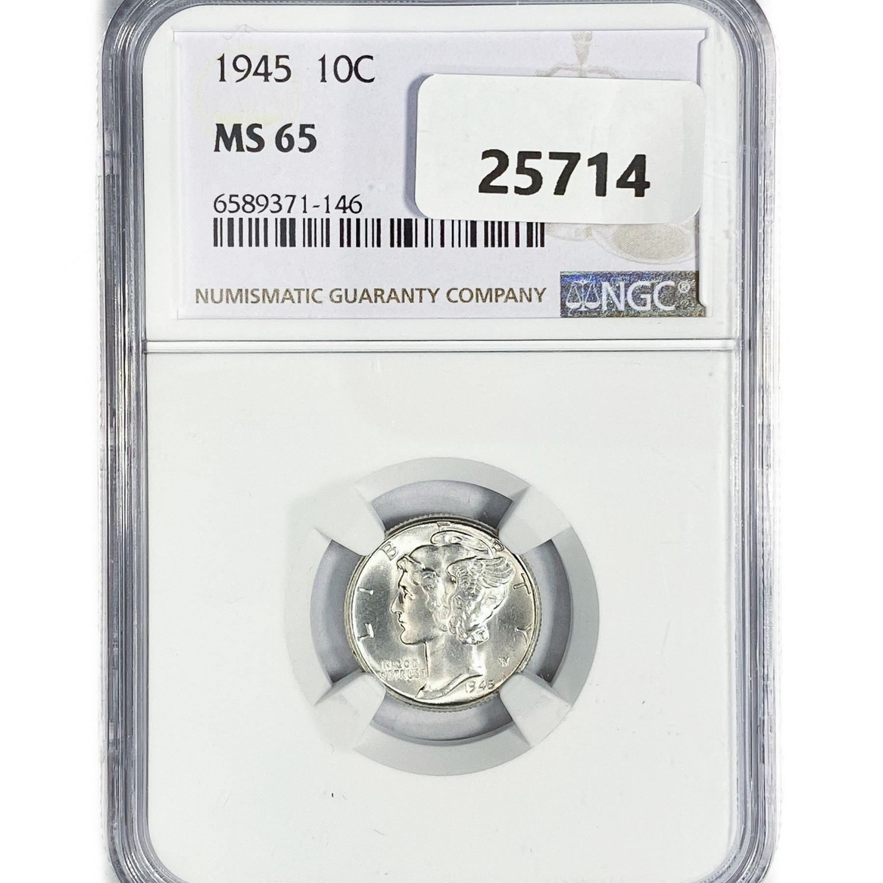 1945 Mercury Silver Dime NGC MS65