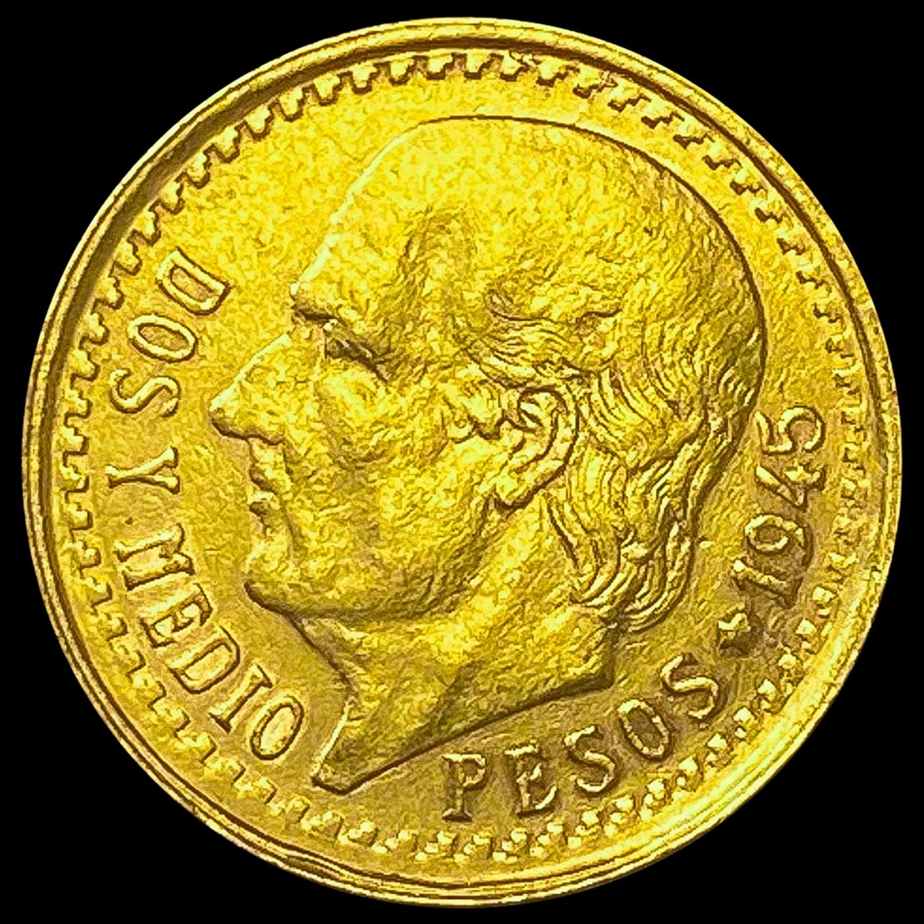 1945 Mexico .0603oz Gold 2 1/2 Pesos CHOICE BU