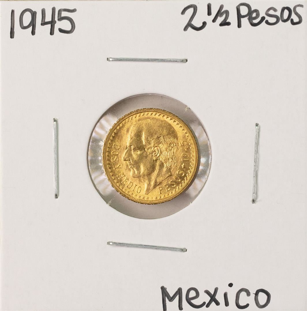 One 1945 Mexico 2 1/2 Pesos Gold Coin.
